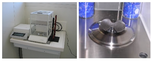 The Laboratoire d’Aérologie (LA) has a METTLER MC21S micro-weighing scale used to make gravimetric measurements of filter samples. The scale has a resolution of 1µg, can weigh samples up to 21g in weight and has a precision of ±5µg. The weighing scale is equipped with a measurement tray specifically designed to accommodate the teflon filters used to capture aerosol samples. The filters, between 25-47mm in size, are weighed before and after sampling so as to determine the mass of aerosols collected and estimate the chemical closure of all samples.