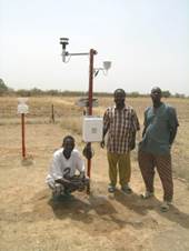 At the stations of Banizoumbou (Niger), Cinzana (Mali), and Bambey (Senegal), the wind speed and direction, air temperature, relative humidity are measured with Campbell® Scientific Instruments at 0.1 Hz. Wind speed and wind direction are measured with a 2DWindSonic, temperature and relative humidity using a 50Y or HMP50 probe located in a naturally ventilated 10-plate radiation shield, and precipitation amount with an ARG100 tipping bucket raingauge. The data acquisition is made using data loggers CR200. The meteorological data are recorded as 5 min averages (except for precipitation amount which is accumulated on past 5 min) and distributed as 1 hour averages (except for precipitation amount which is accumulated on past 1hour) (UTC).